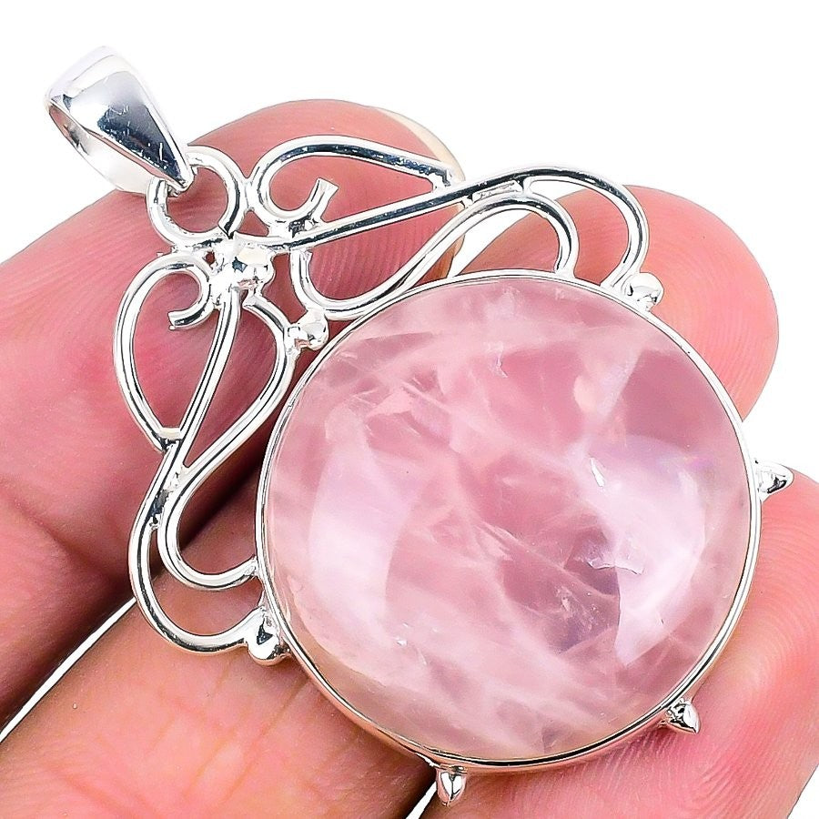 Rose Quartz Gemstone Ethnic Best Friend Gift Pendant Jewelry 925 Sterling Silver