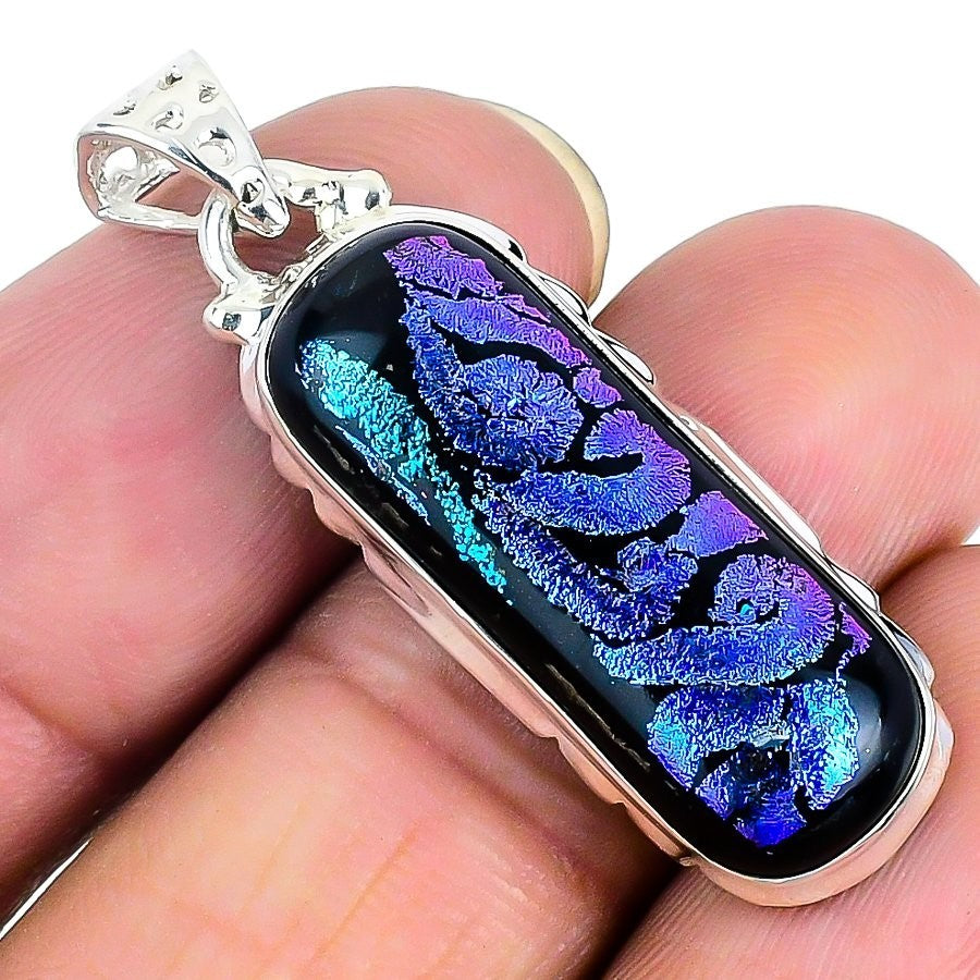 Natural Mexican Dico Glass Solid Silver Sister Bezel Friendship Day Boho Pendant
