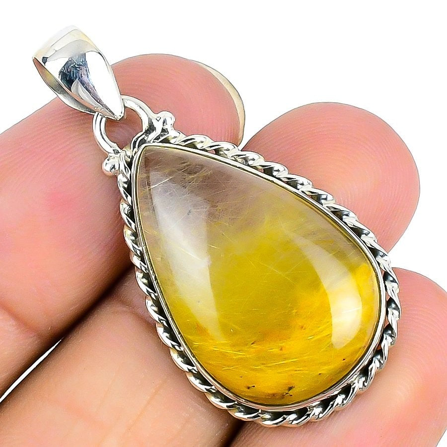 Natural Golden Rutile 925 Sterling Silver Engagement Daughter Pendant Jewelry