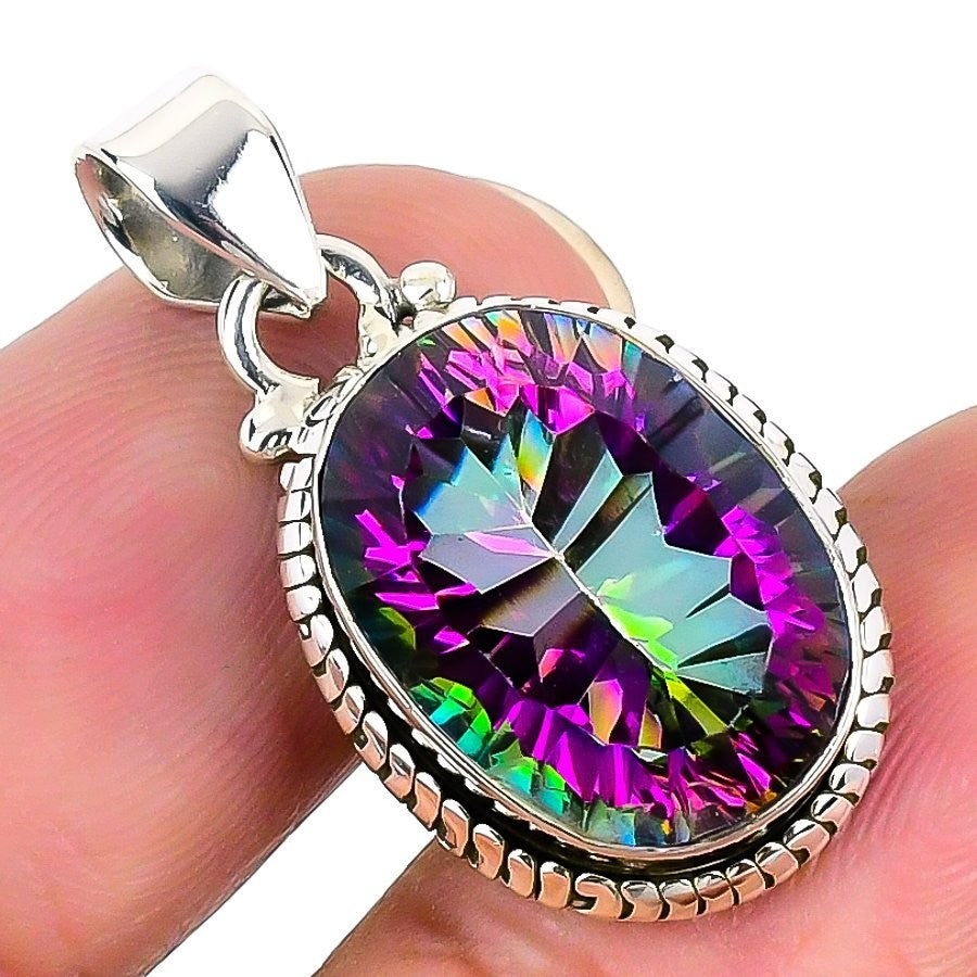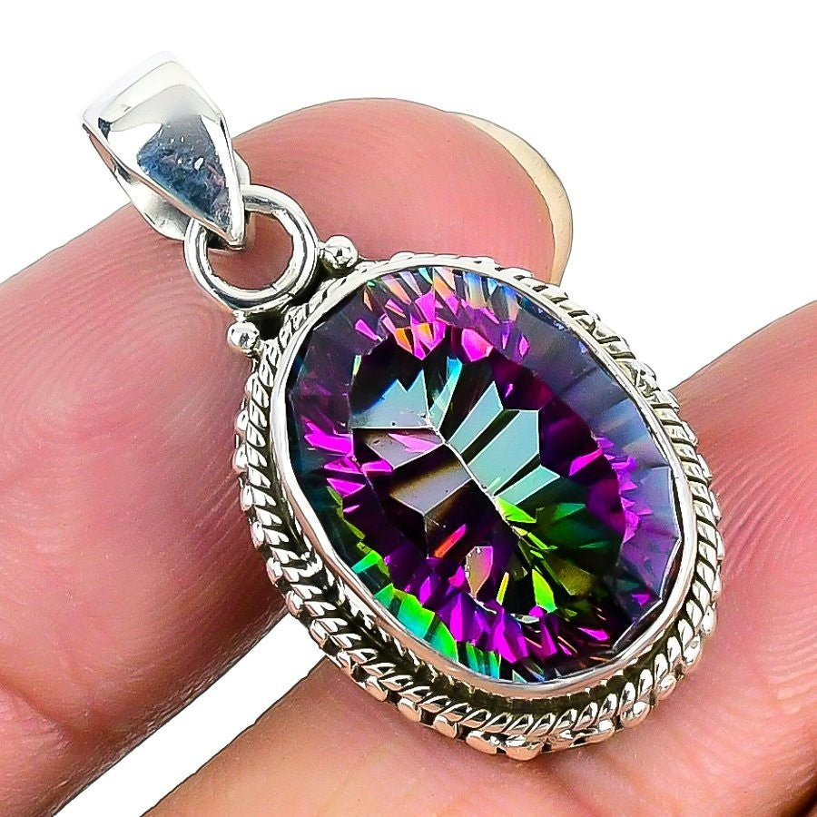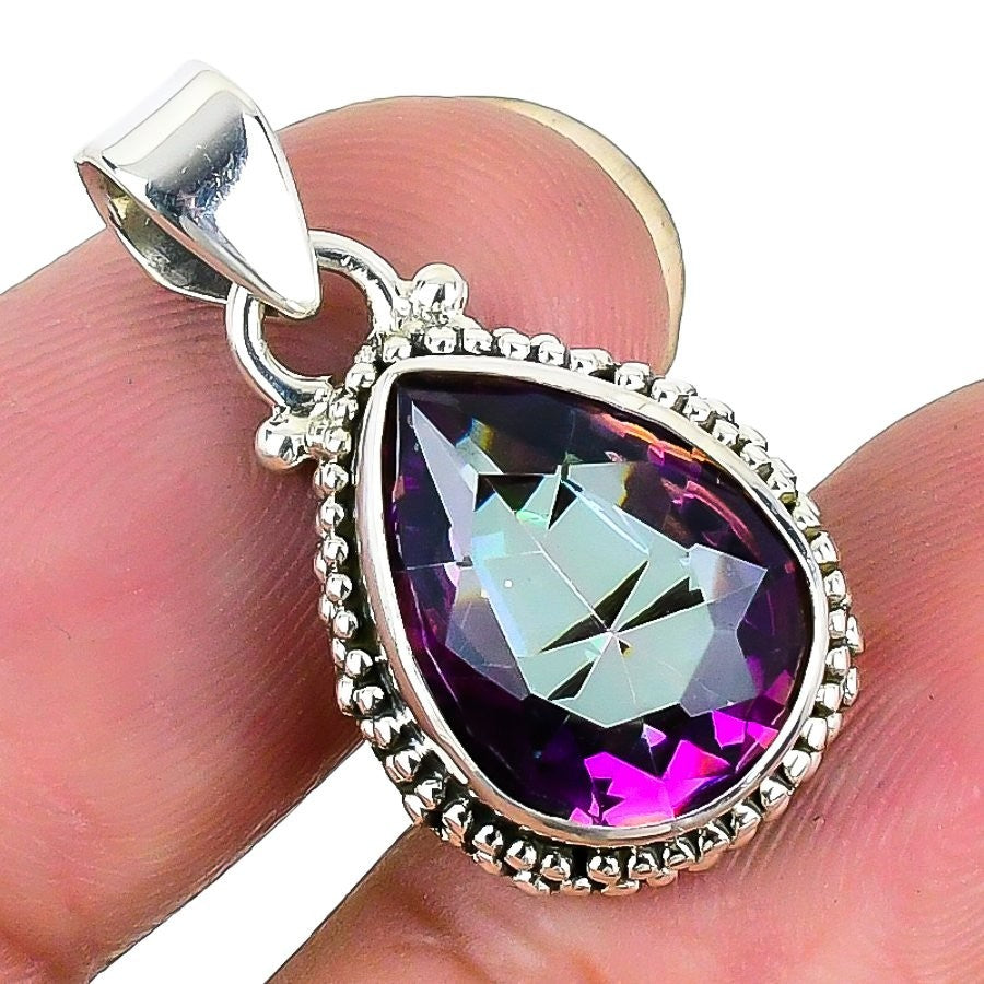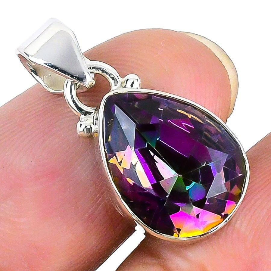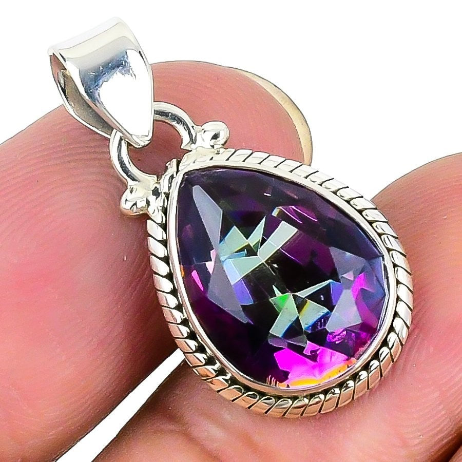 Natural Rainbow Mystic Topaz Wife Elegant Pendant Jewelry 925 Sterling Silver