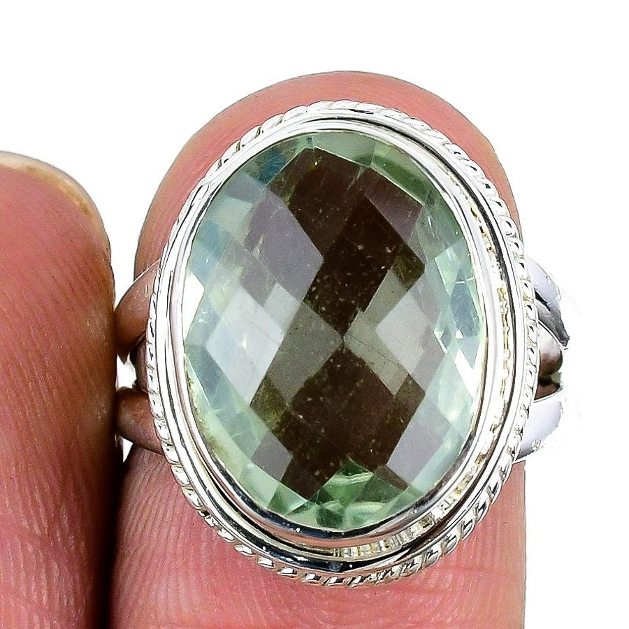 Natural Green Amethyst 925 Sterling Silver Statement Sister Ring Jewelry US 8
