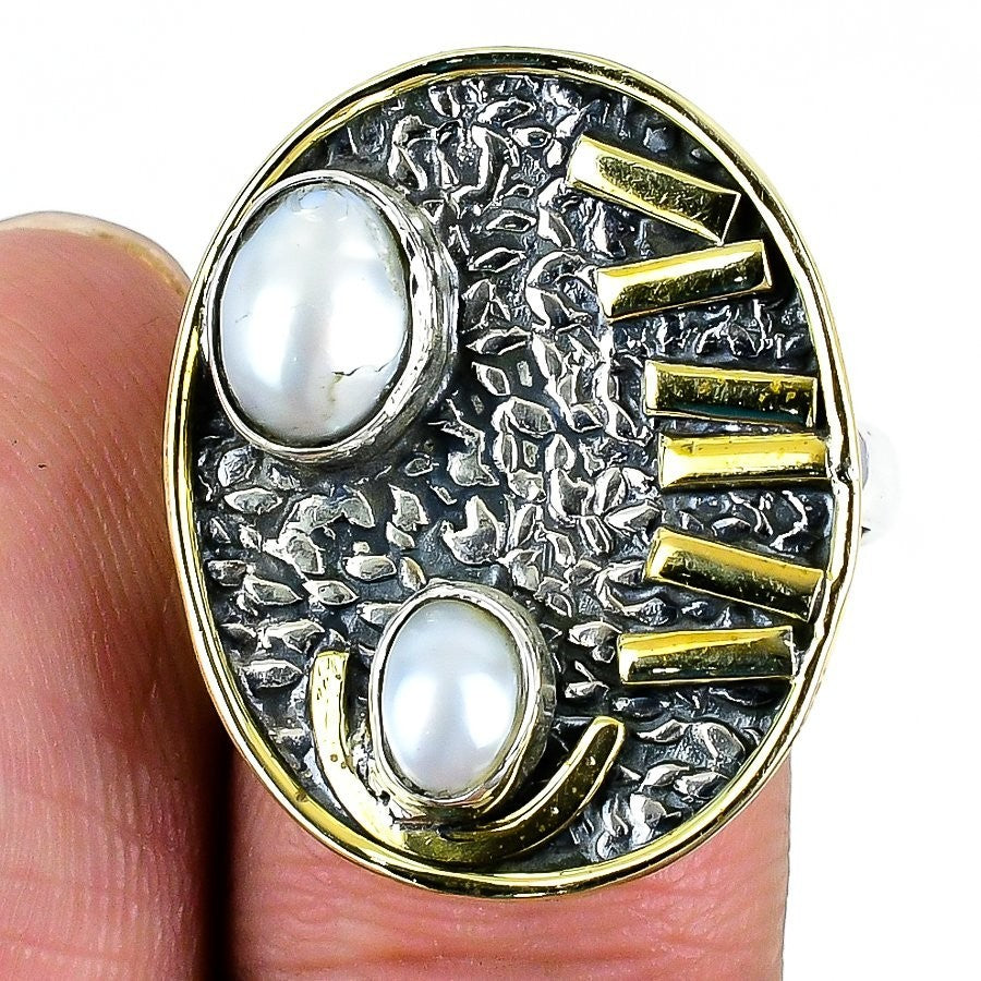 Blister Pearl Stone 925Ā SolidĀ Silver Statement Sister New Ring Jewelry Size 8.5