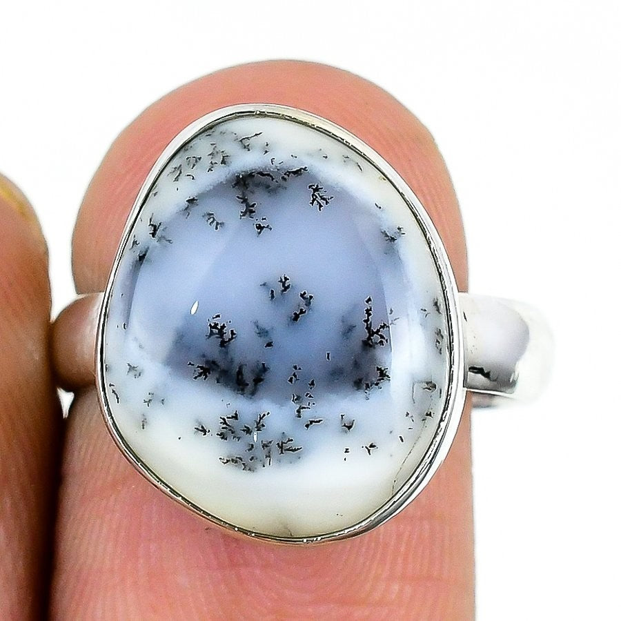 Dendrite Opal Gemstone Elegant Sister Ethnic Statement Ring Solid Silver US 8
