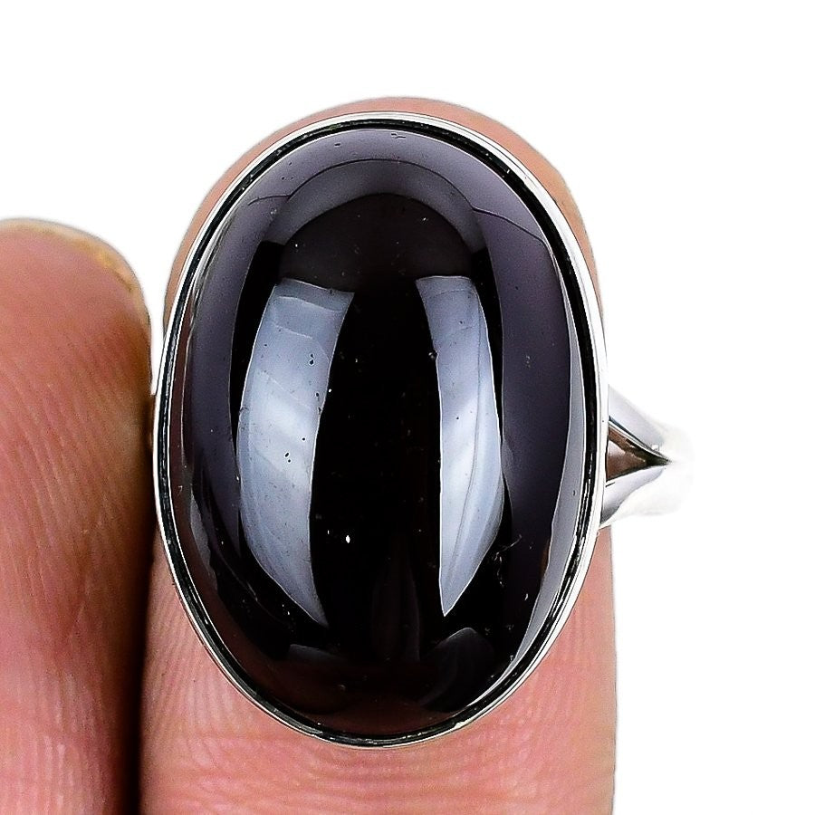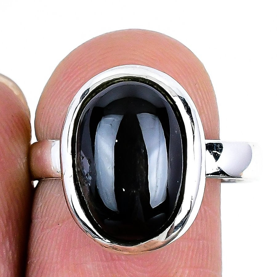 Black Star Stone Solid Sterling Silver Bezel Statement Sister Ring Jewelry US 9