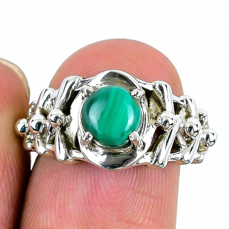 Natural Malachite 925 Sterling Silver Statement Daughter Heart Chakra Ring US 7