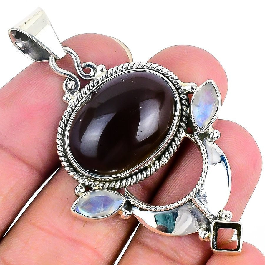 Smoky Quartz Gemstone 925Ā SolidĀ Silver Bezel Elegant Unique Sister New Pendant
