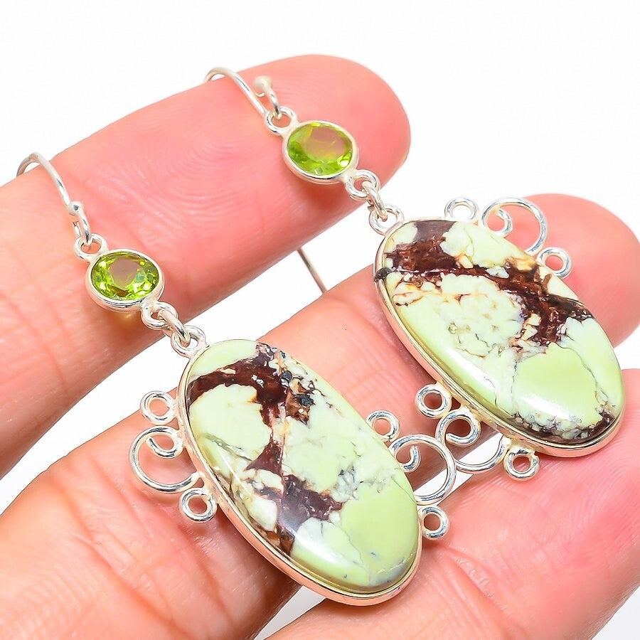 Boulder Chrysoprase Stone Sterling Silver Wedding Drop Birthday Earrings Jewelry