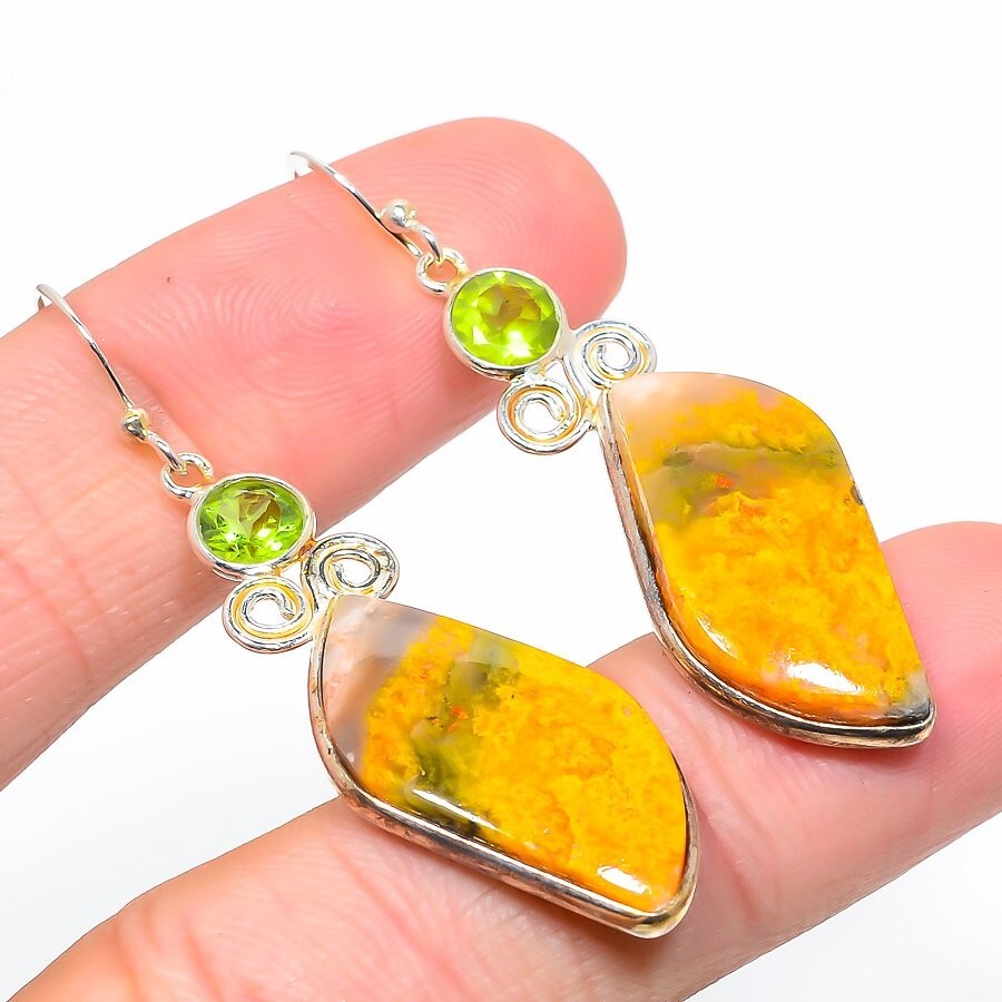 Natural Bumblebee Jasper Solid Sterling Silver Daughter Drop Earrings Jewelry