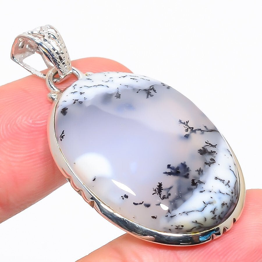 Dendrite Opal Gemstone 925 Sterling Silver Wife Engagement New Pendant Jewelry