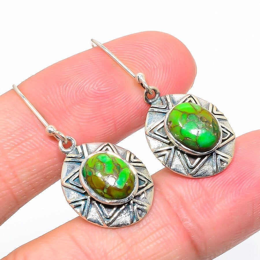 Natural Copper Green Turquoise 925 Sterling Silver Drop December Birth Earrings