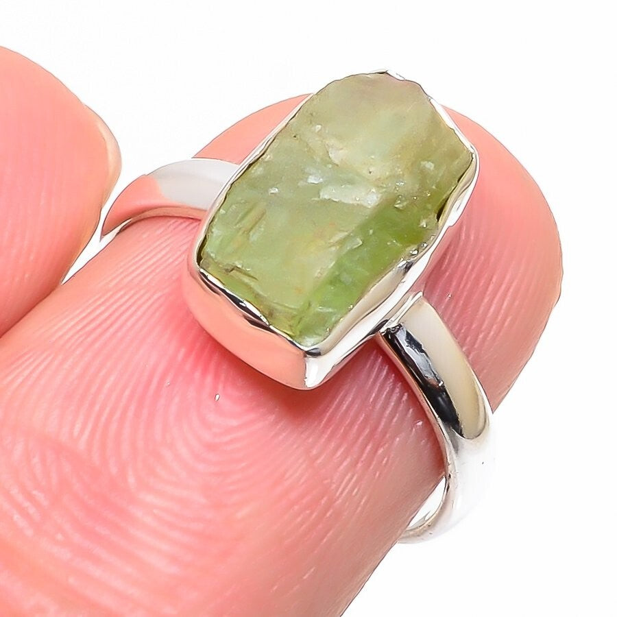 Green Kyanite Gemstone Solid Silver Wedding Elegant Unique Cluster Ring Size 6.5