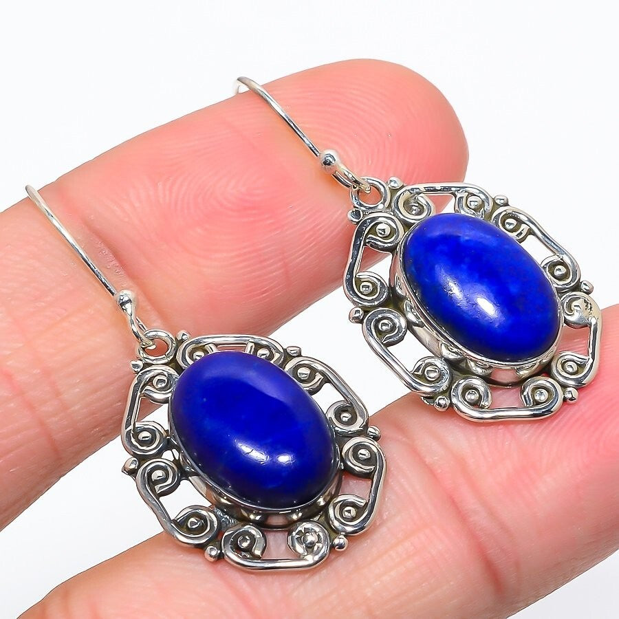 Natural Lapis Lazuli 925 Sterling Silver Hook Drop Dangle Daughter New Earrings