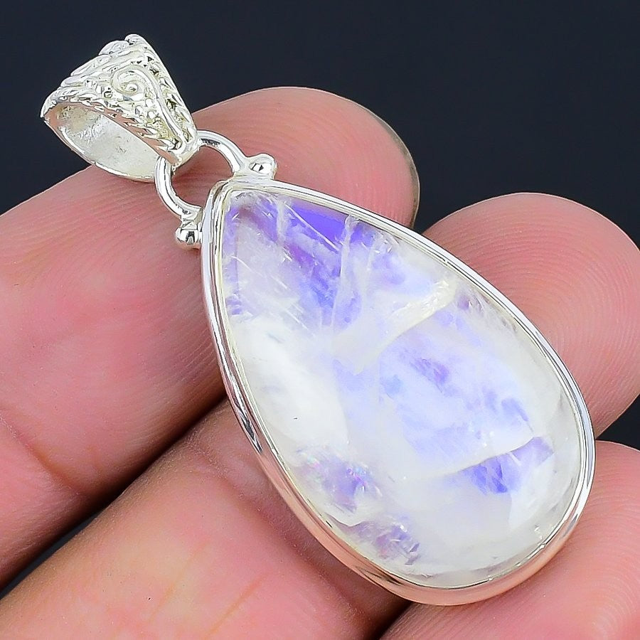 June Natural Moonstone 925 Silver Channel Set Engagement Friend Gift New Pendant