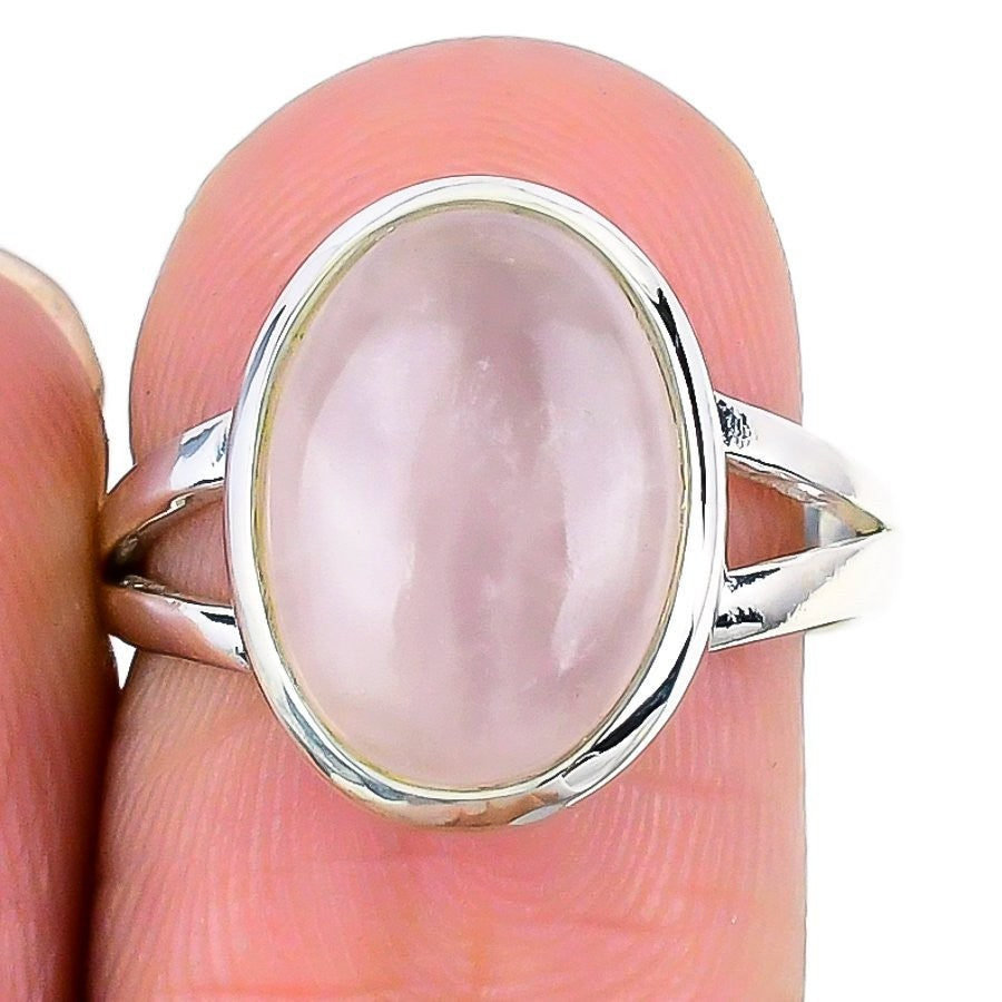 Rose Quartz Gemstone 925 Silver Channel Set Statement Sisters Gift Ring Size 7