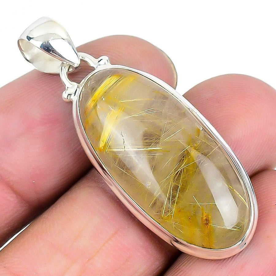 Golden Rutile Gemstone Solid Sterling Silver Channel Set Wedding Pendant Jewelry