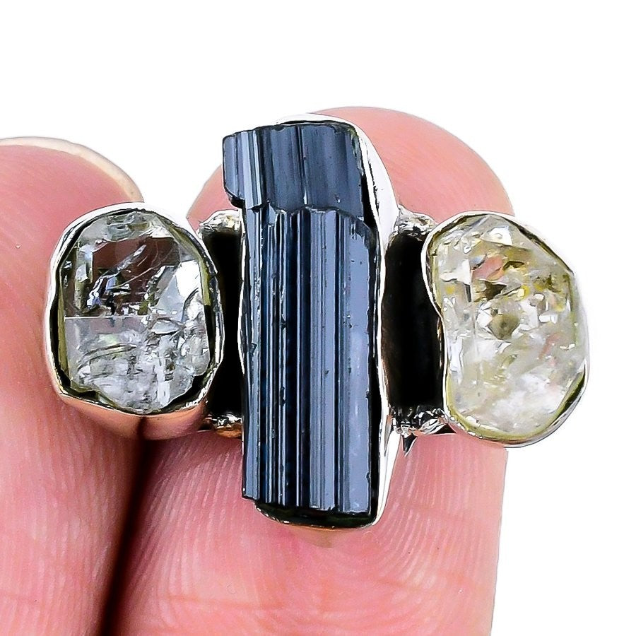 Multi Tourmaline Stone Sterling Silver Statement Anniversary Boho Ring Size 6.5