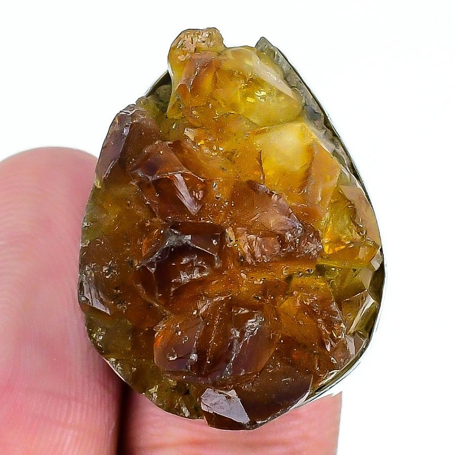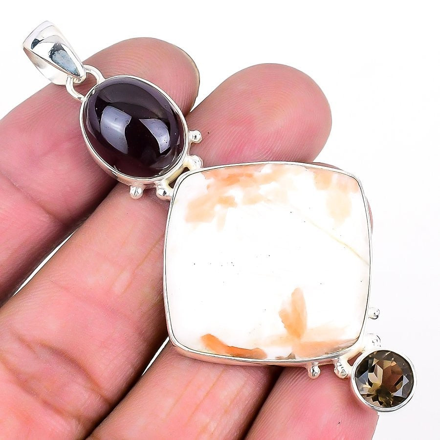 Crown Chakra Natural Orange Scolecite Daughter Boho Pendant Jewelry Solid Silver