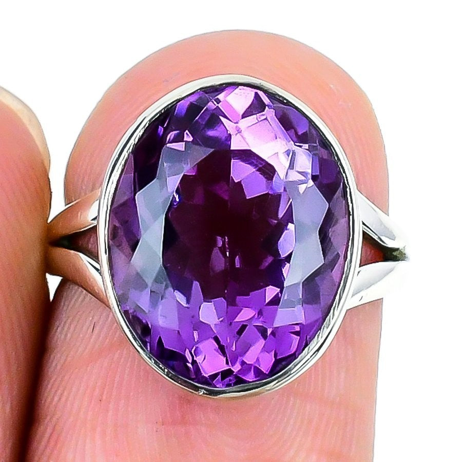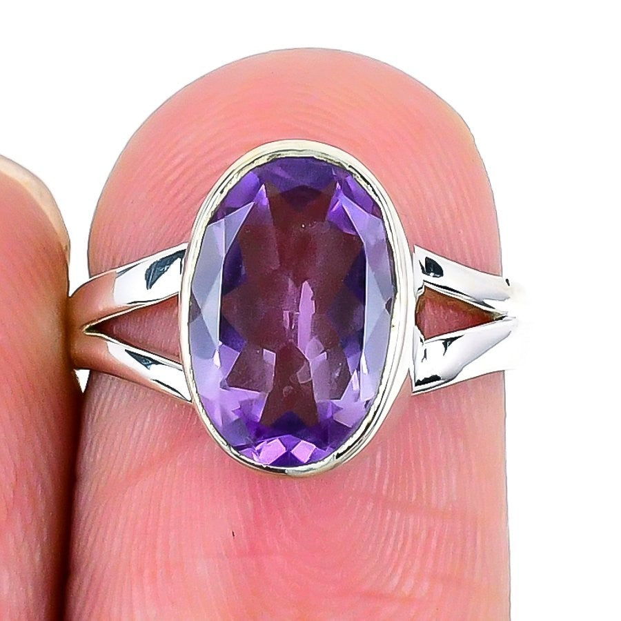 Natural Amethyst Solid Sterling Silver Boho Statement Unique Ring Jewelry Size 6