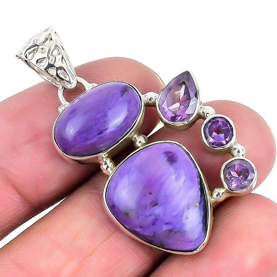 Friendship Day Sale Russian Charoite Gemstone Sterling Silver Pendant Jewelry