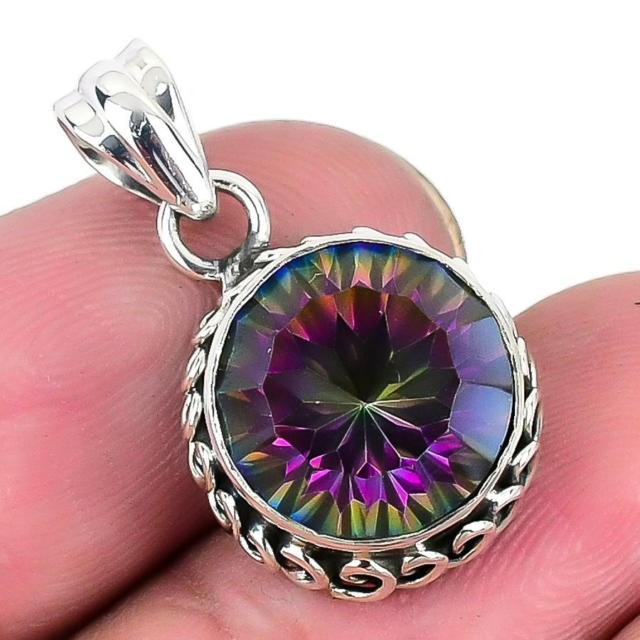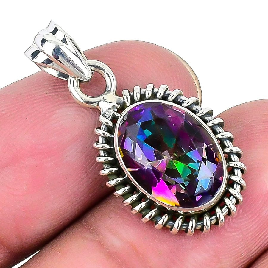 Mystic Topaz Stone Wedding Ethnic Best Friend Gift Pendant Solid Sterling Silver