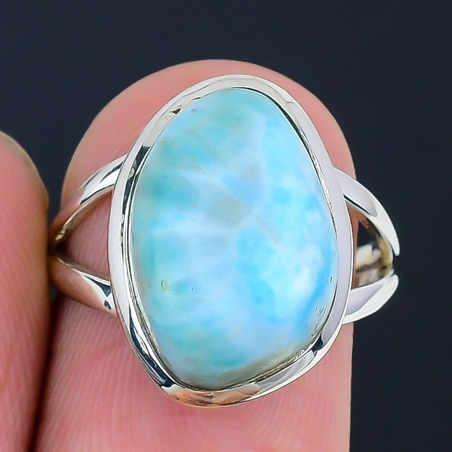 Larimar Gemstone Solid Sterling Silver Engagement Sister New Statement Ring US 7