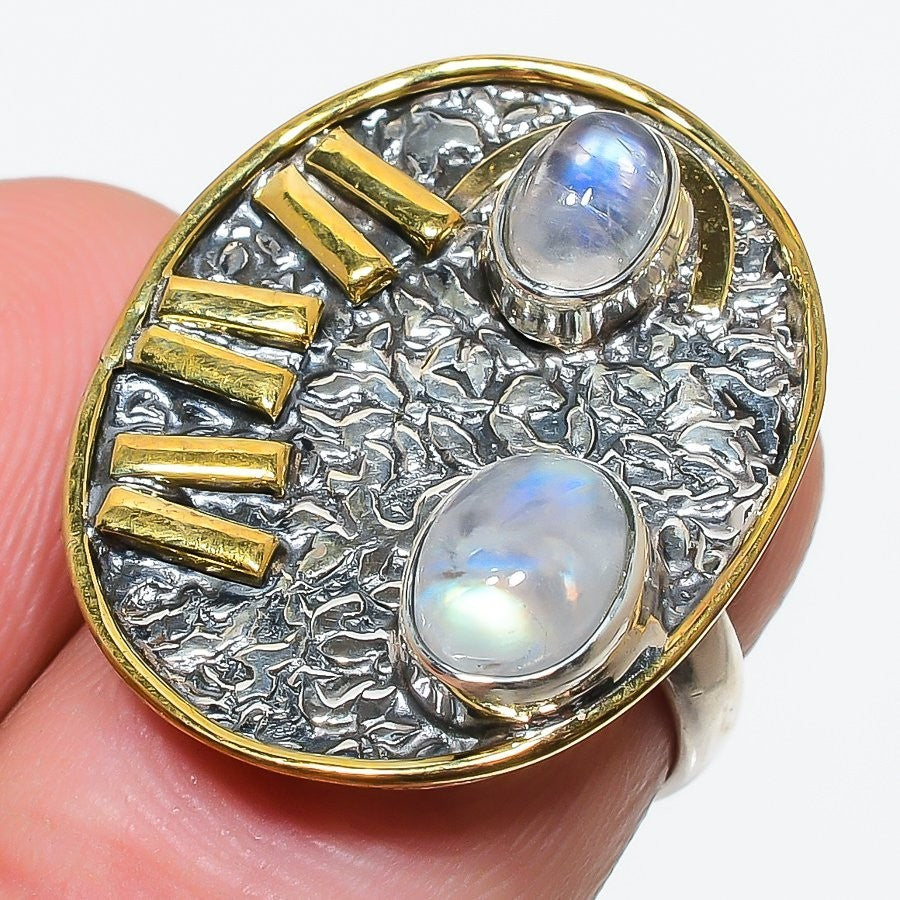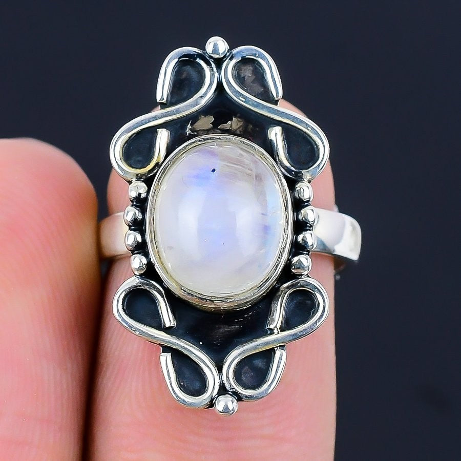 Rainbow Moonstone Stone 925 Sterling Silver Statement Birthday Wedding Ring US 6