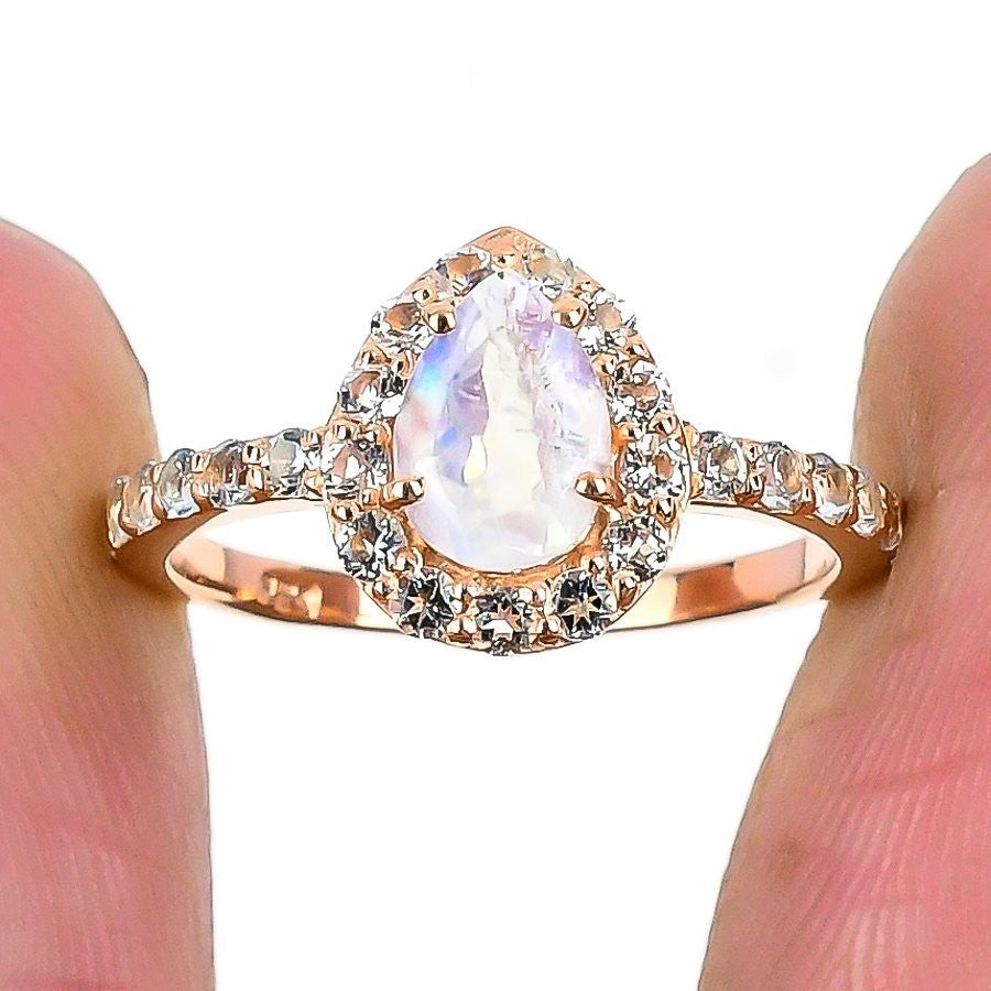Natural Rainbow Moonstone Solid Silver Statement Best Friend Gift Ring Jewelry