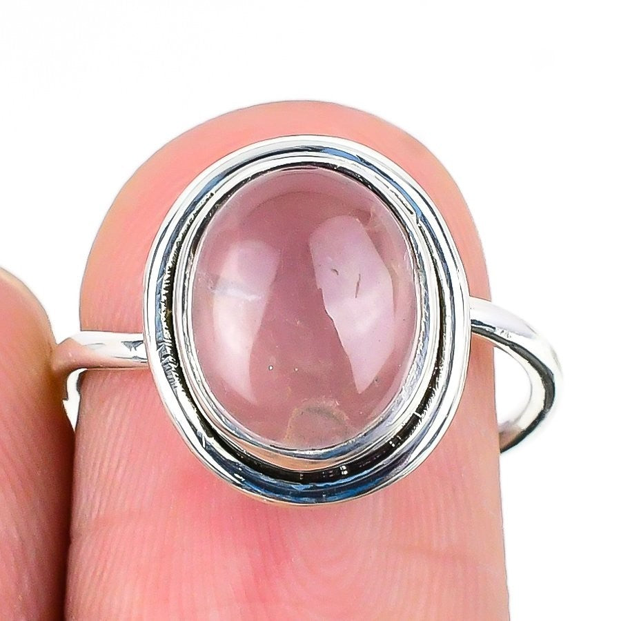 Rose Quartz Gemstone 925 Sterling Silver Statement Friend Gift Ring Jewelry US 8