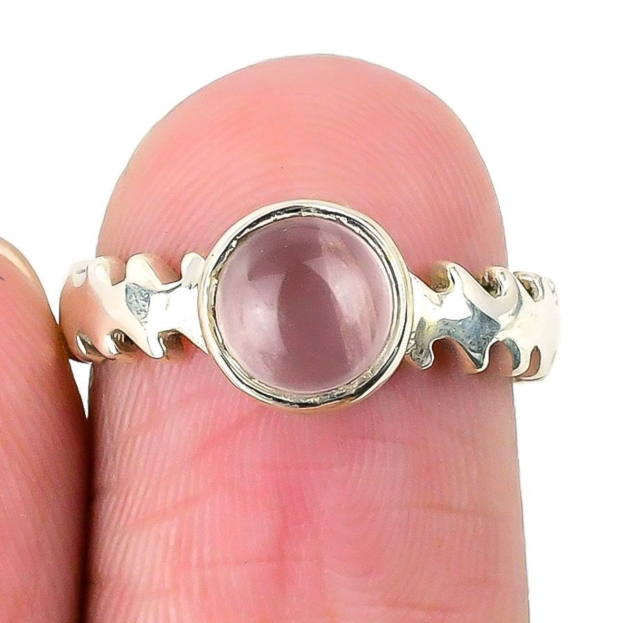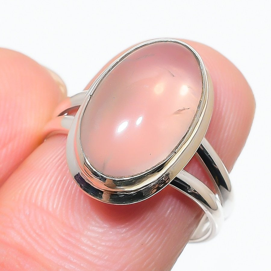 Natural Rose Quartz 925Ā SolidĀ Silver Statement Friendship Day Ring Jewelry US 8
