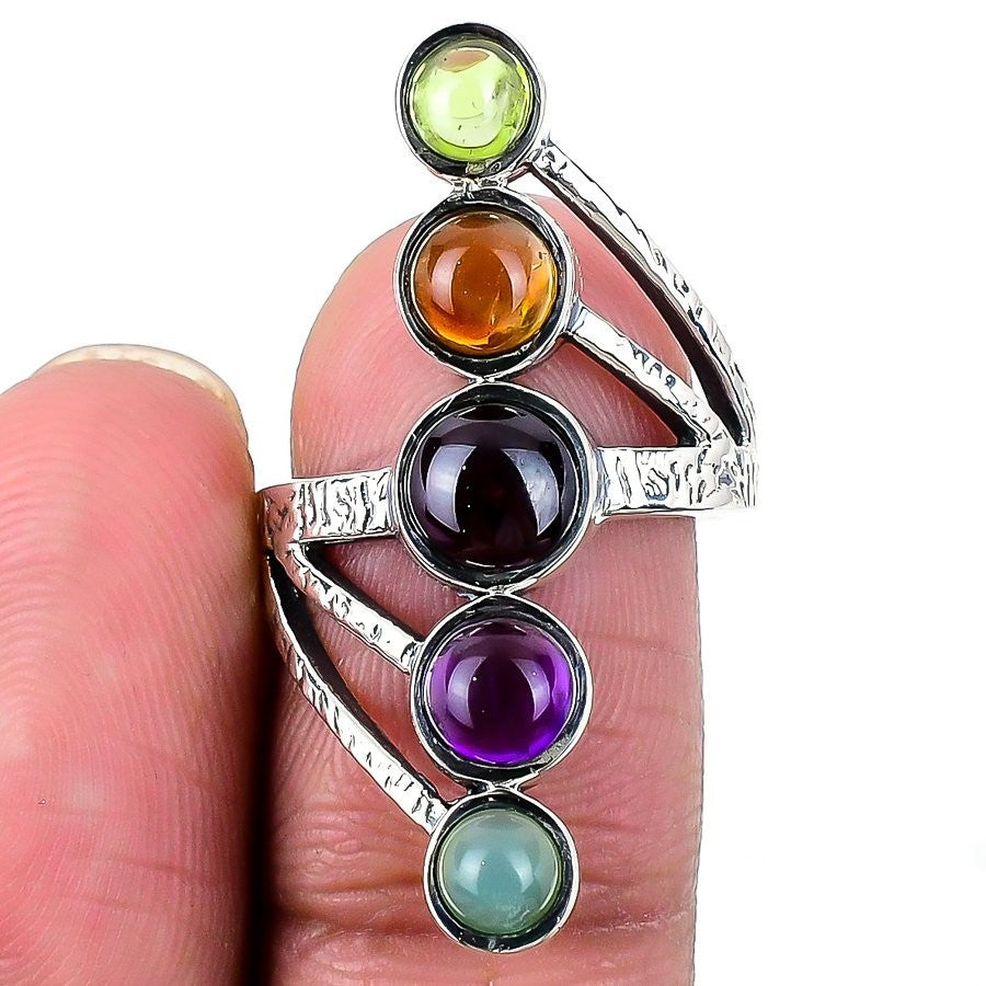 Sage Amethyst Stone 925Ā SolidĀ Silver Daughter Birthday Statement New Ring US 7.5