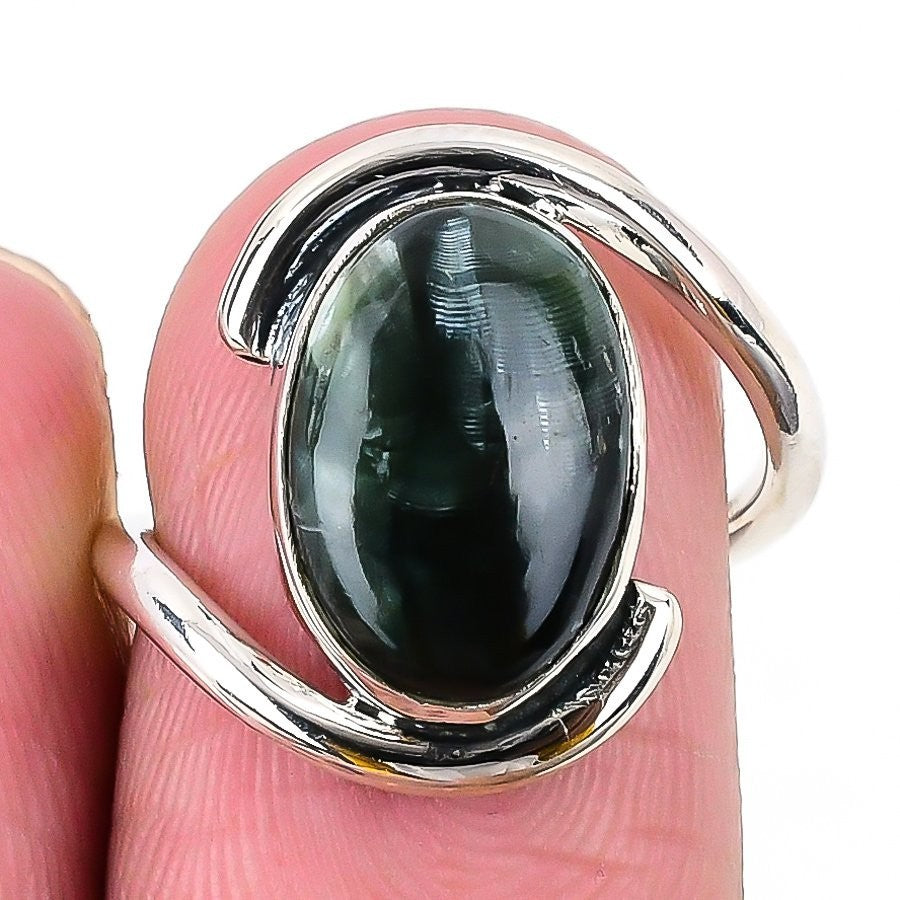 Natural Seraphinite 925 Sterling Silver Birthday Statement Ring Jewelry Size 5.5
