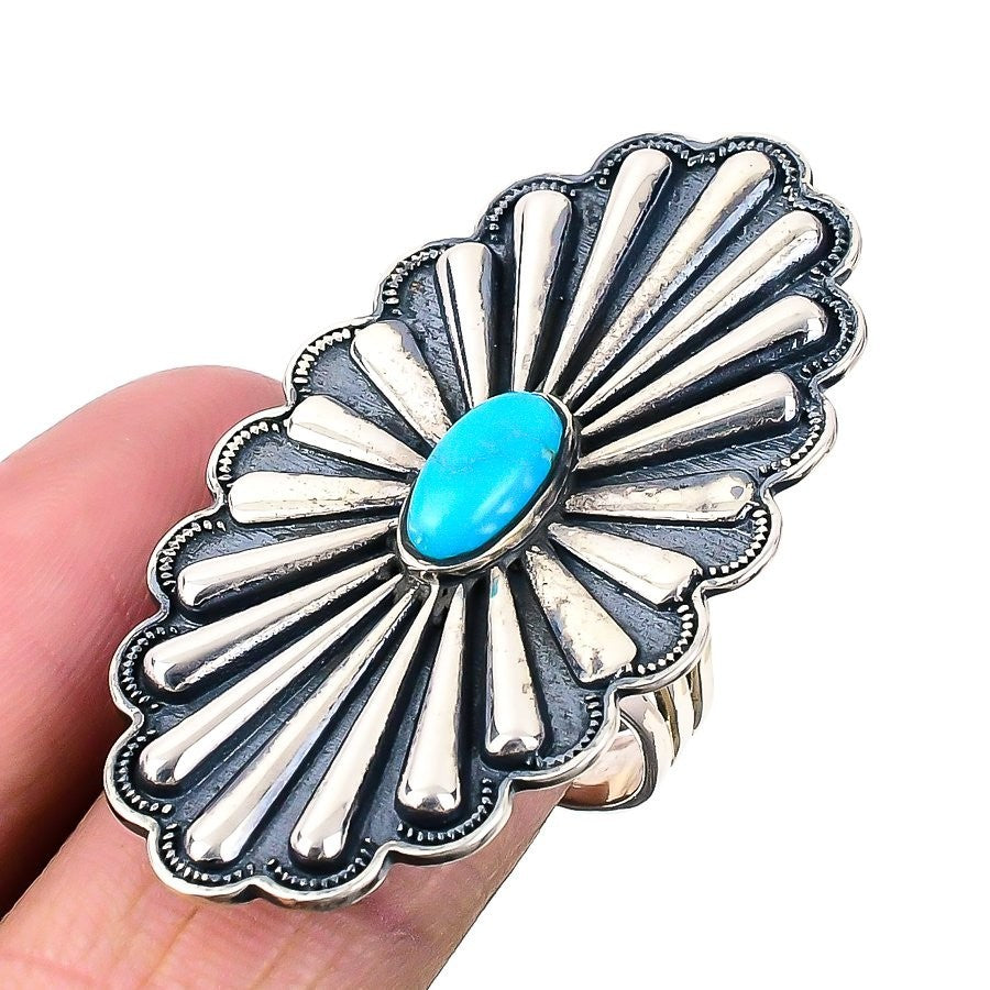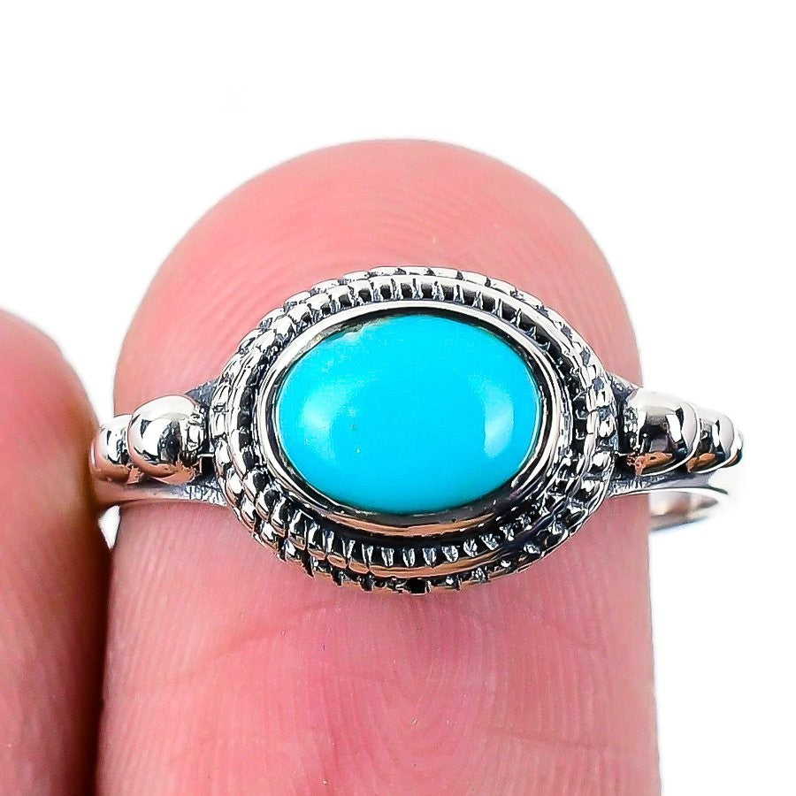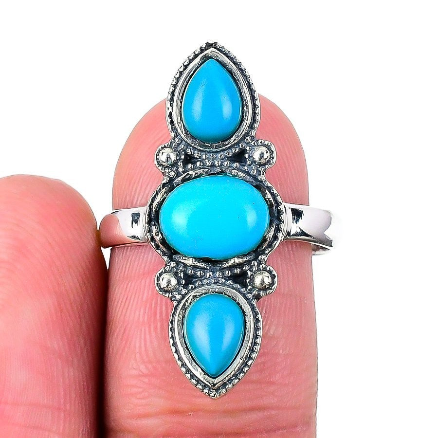 Sleeping Turquoise Gemstone Statement Daughter Friend Gift Ring 925 Silver US 8