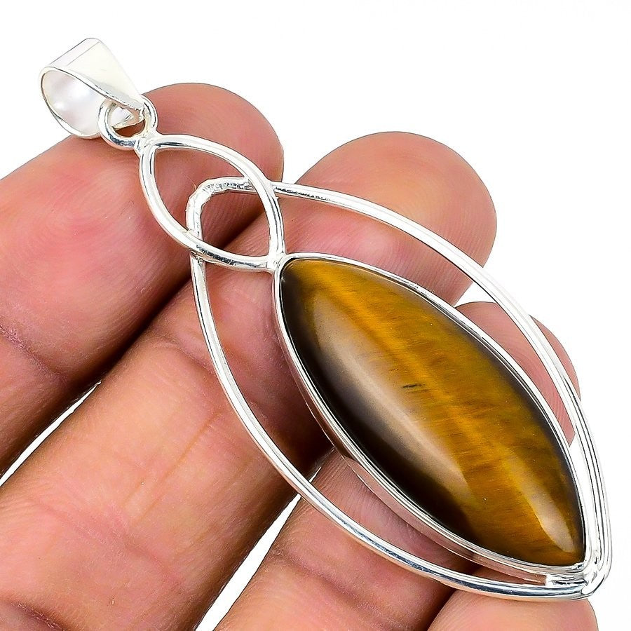 Tiger Eye Gemstone Solid Sterling Silver Engagement Sister Boho Pendant Jewelry
