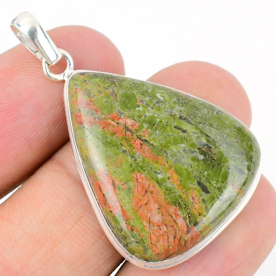 Heart Chakra Unakite Gemstone 925 Sterling Silver Art Deco Anniversary Pendant