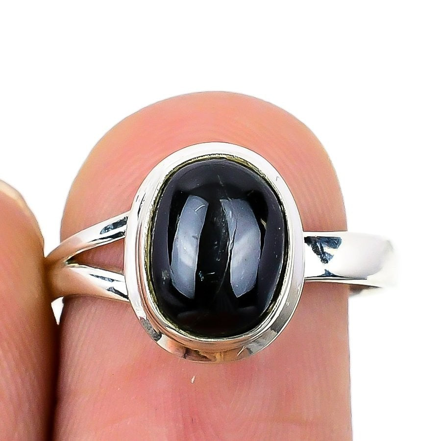 Natural Obsidian Eye Statement Birthday Elegant Wife Ring Sterling Silver US 8