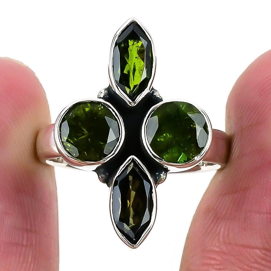 Heart Chakra Natural Peridot Sterling Silver Cluster Boho Ring Jewelry Size 8