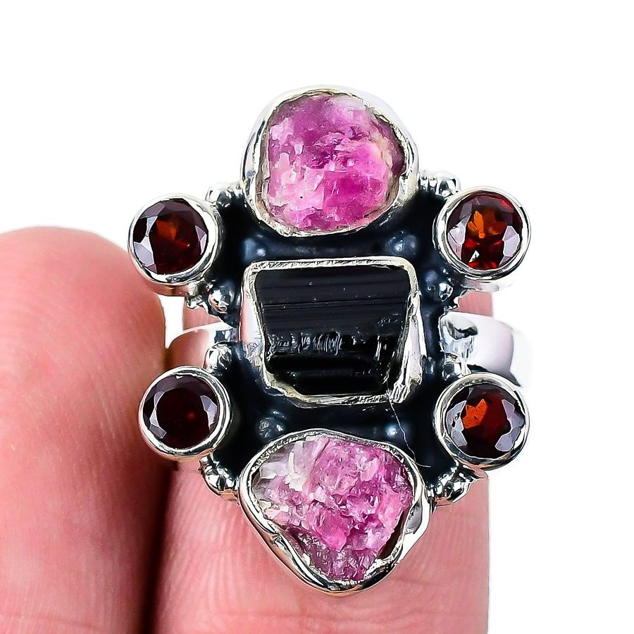 Pink Tourmaline Stone 925Ā SolidĀ Silver Unique Statement Mother Elegant Ring US 7