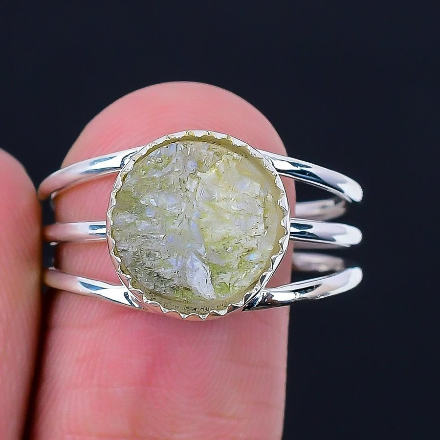 Rainbow Moonstone Gemstone 925Ā SolidĀ Silver Trendy Statement Ring Jewelry US 8.5