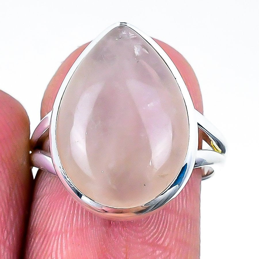 Rose Quartz Stone 925 Silver Wedding Promise Band Sister Anniversary Ring US 7