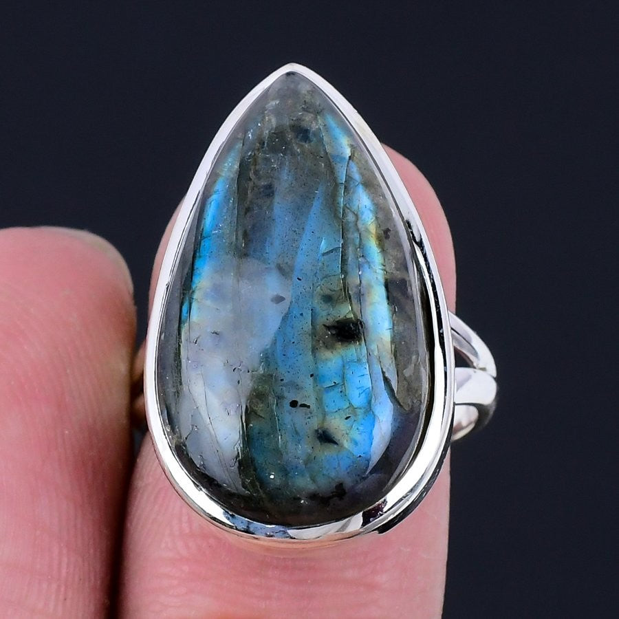 Labradorite Gemstone Cluster Engagement Ring Jewelry Size 8 925 Sterling Silver