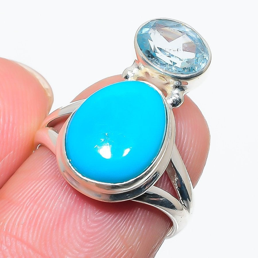 Natural Arizona Turquoise 925 Silver Sisters Day New Cluster Ring Jewelry Size 6