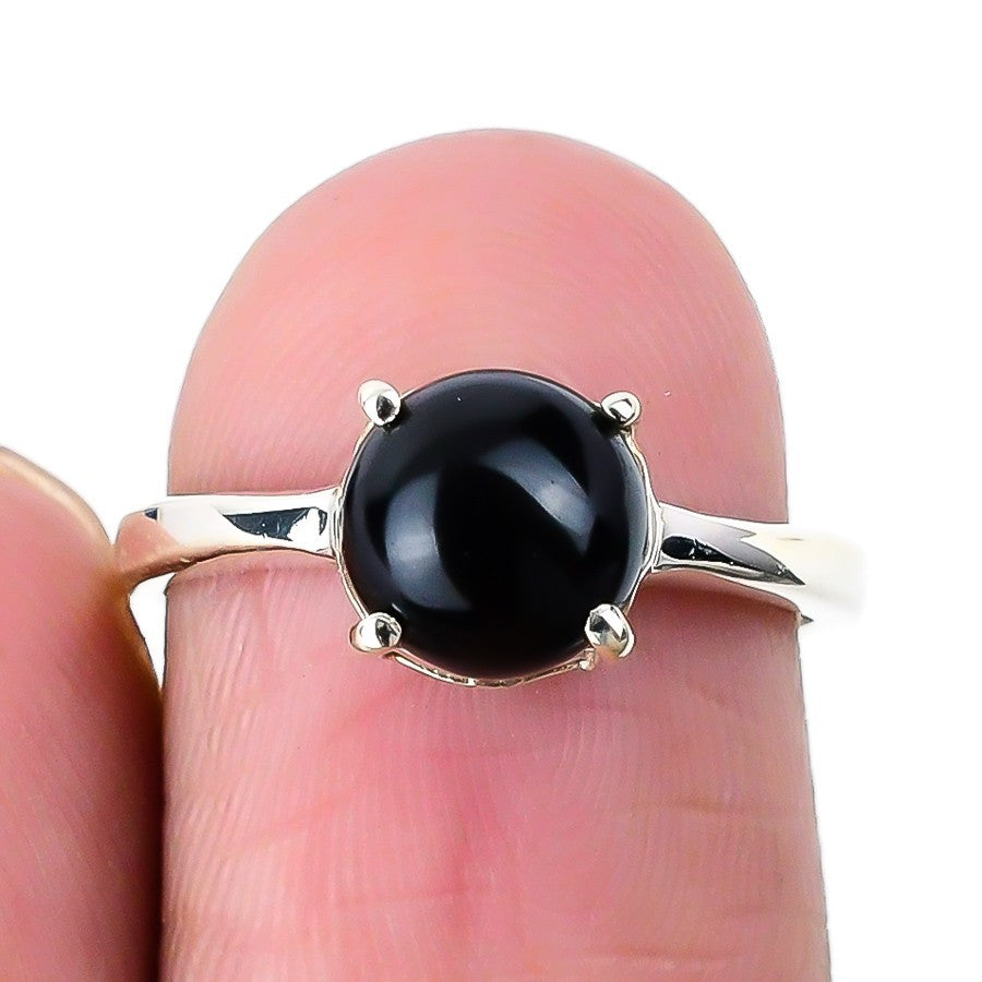 Natural Black Onyx Artisan Trendy Cluster Mother Ring Size 7 925Ā SolidĀ Silver