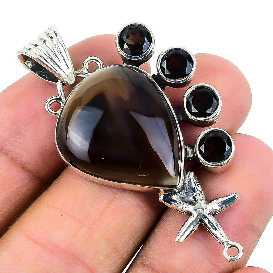 Nuummite Stone 925 Sterling Silver Unique Elegant Mother Wedding Pendant Jewelry