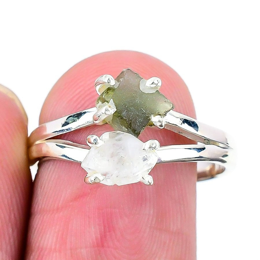Natural Herkimer Daimond Solid Silver Boho Statement Best Sisters Gift Ring US 7