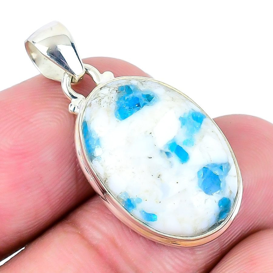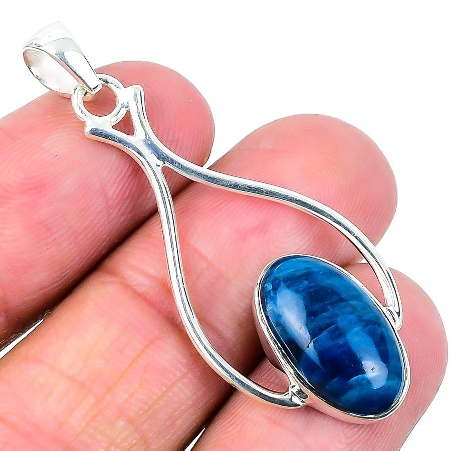 Neon Blue Apatite Gemstone Sterling Silver Throat Chakra Wedding Pendant Jewelry