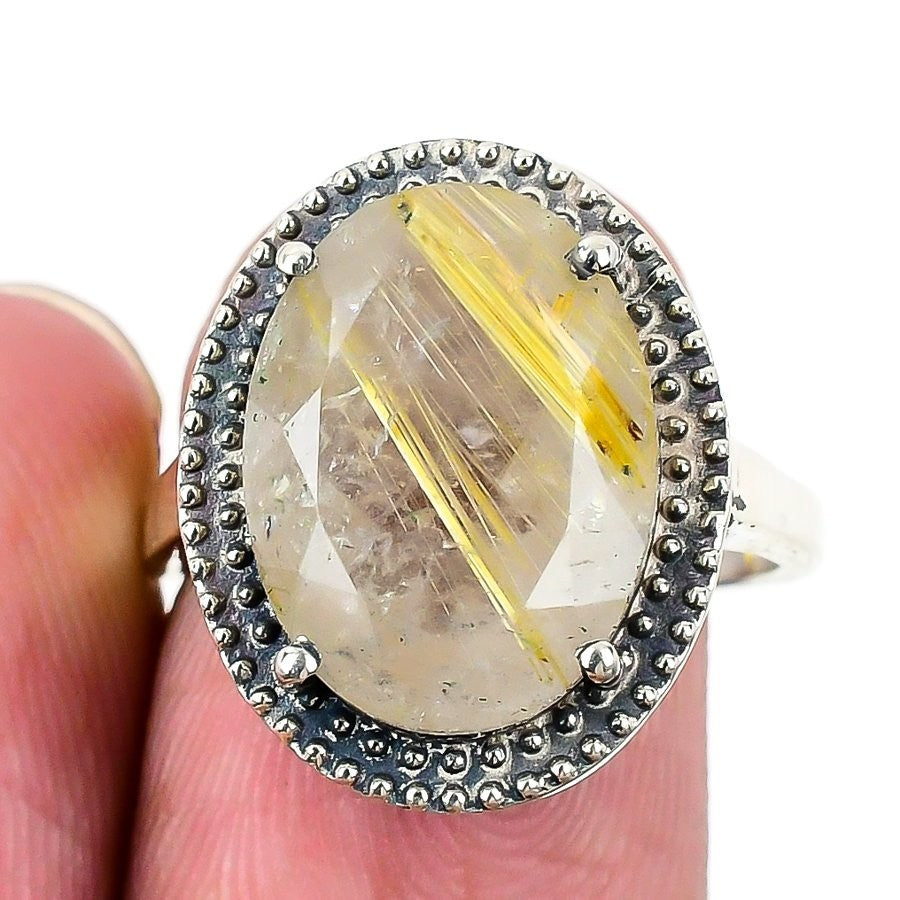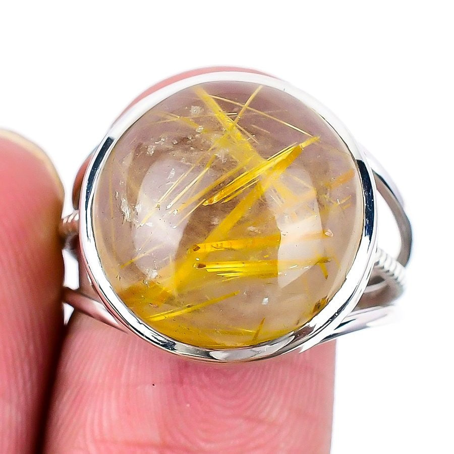 Golden Rutile Gemstone 925 Sterling Silver Unique Statement Wedding Ring US 8