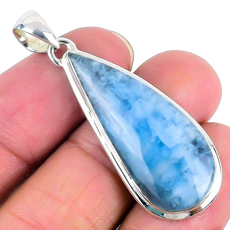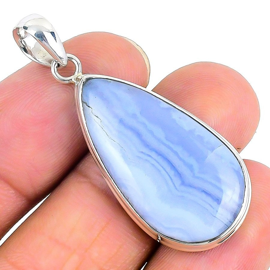 Natural Blue Lace Agate Daughter Anniversary Pendant Jewelry 925 Sterling Silver