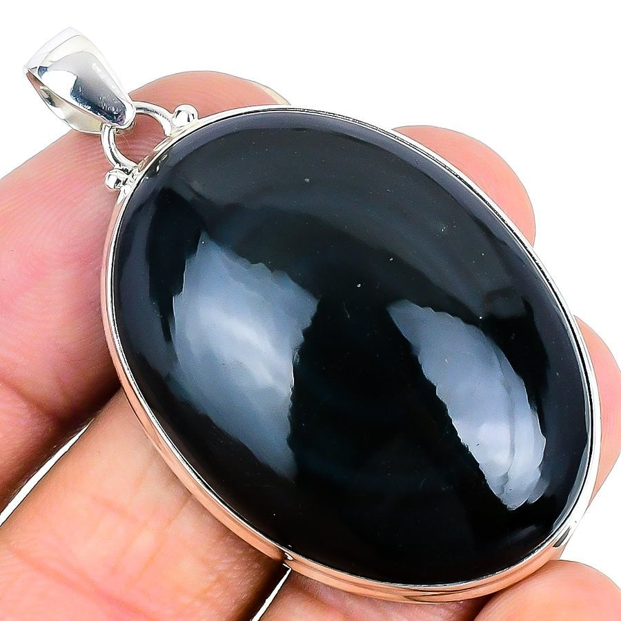 Throat Chakra Black Kyanite Stone Solid Sterling Silver Bezel Trendy New Pendant
