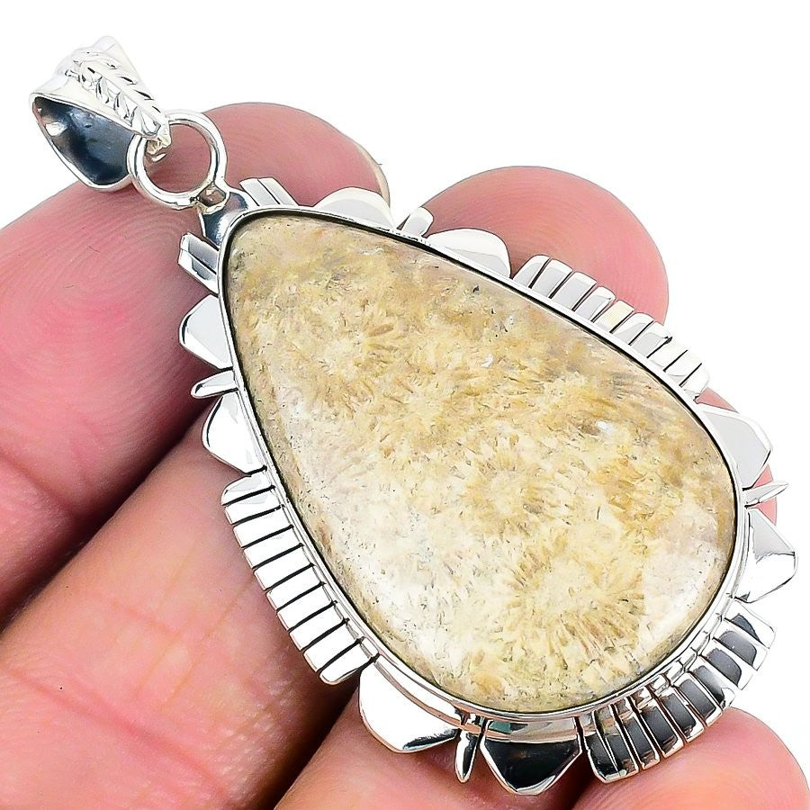 Natural Fossil Coral Best Friend Gift Wife Wedding New Pendant 925Ā SolidĀ Silver