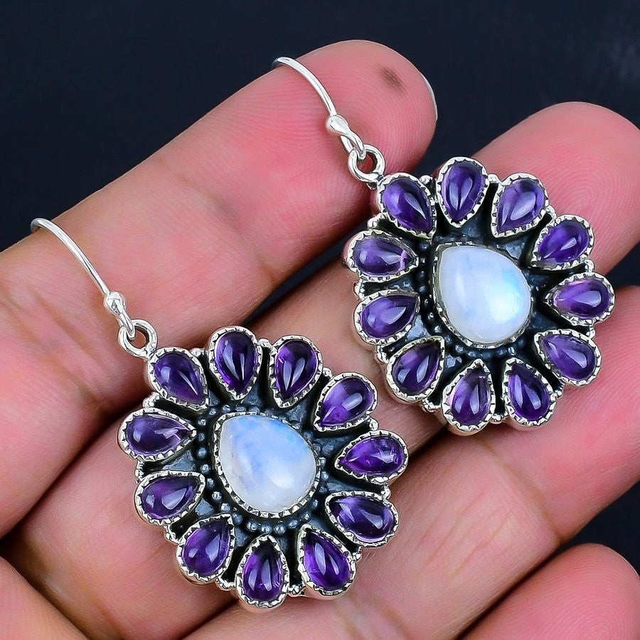 Rainbow Moonstone Stone Sterling Silver Birthday Dangle Wedding Earrings Jewelry